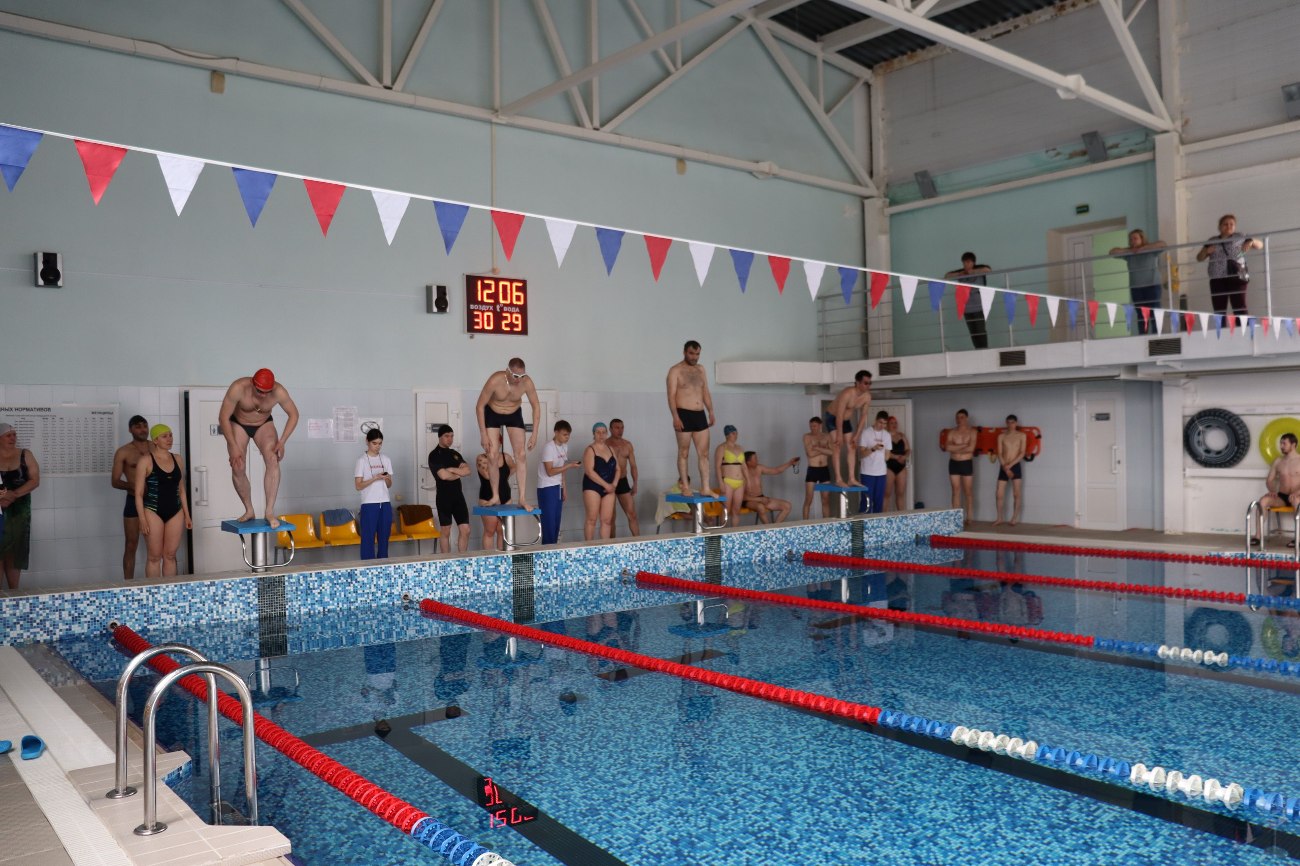13 апреля т.г. в плавательном бассейне АУ ДО «СШ «Локомотив» г.Канаш собралось немало спортсменов - участники соревнований, многочисленные болельщики и просто любители плавания. В программу соревнований входила эстафета 3 х 50 м. Первыми вышли на старт команды заводоуправления, цеха малых серий, вагоносборочный цех и отдел капитального строительства. Уже с первого этапа лидирующее положение здесь захватила спортсменка заводоуправления – Наталия Манцерева. После первого заплыва на стартовые тумбы поднимаются участники кузнечно-штамповочного цеха, участка производства деталей универсального сборочно-сварочного корпуса, инструментально-ремонтно-механического цеха и цеха ходовых частей. Здесь уверенно удерживали первую позицию на всех этапах, спортсмены УПД.